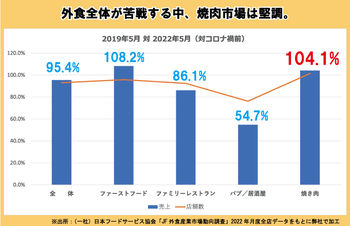 換気の良さなど理由は様々ですが、実際に焼肉店の業績はコロナ禍でも伸びています。